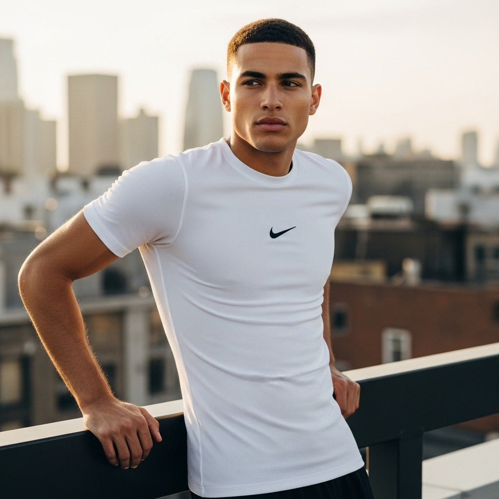 The T-shirt has a classic fit that complements all body types, with an adjustable drawstring hem for a customizable feel.